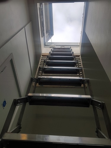 A Hotel in York rang us to install a concertina ladder to an existing roof hatch, the space was a little tight due to it being located on a staircase so the concertina ladder was the ideal option for this job.
